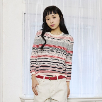 WHITE LINE COMBED COTTON OVER GATHER BLOUSE
