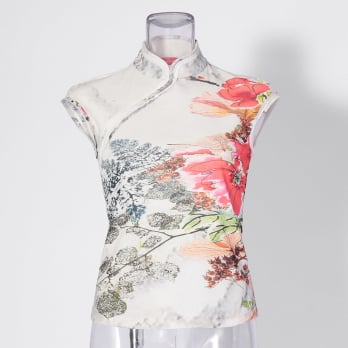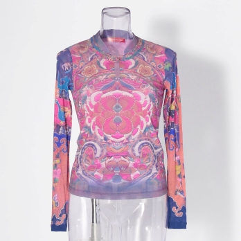 DALI MARBLE FLOWER PRINT NET BLOUSE
