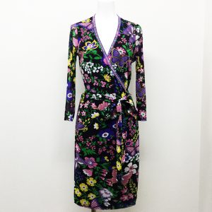着用商品は、バタフライプリントのチュールワンピース(07176035) col.06 42,000yen+taxとチャイナカラーのブラッシュストロークプリントワンピース(07175389) col.99 39,000yen+tax。