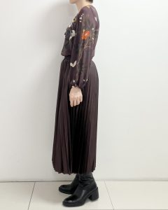 レザー見えするプリーツスカートと合わせてカジュアルにコーディネート🍁