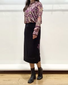 黒のペンシルスカートを合わせて、