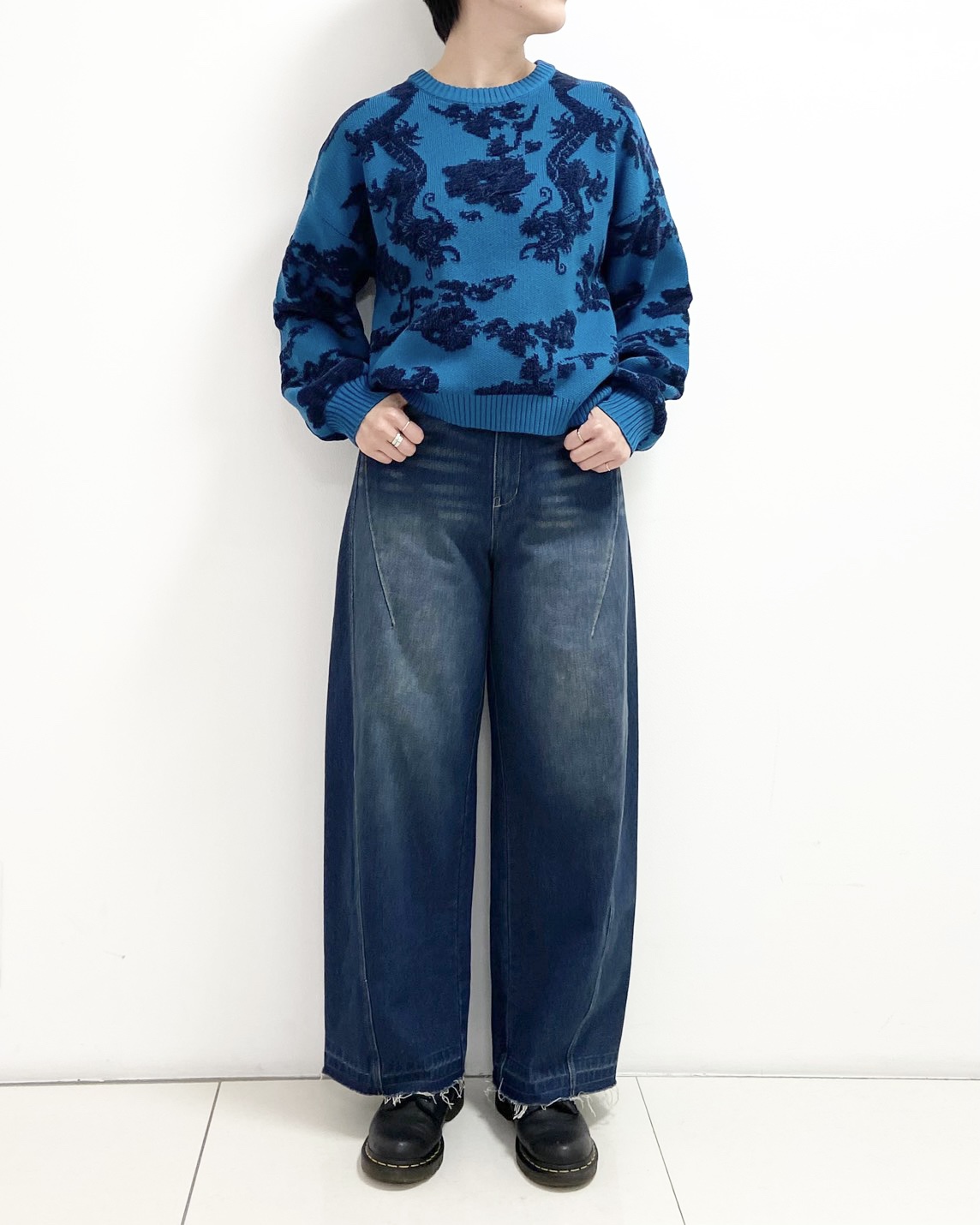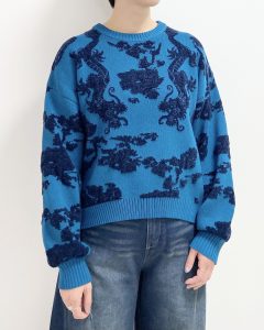 ドラゴンとフラワー柄のモコモコとした立体感が可愛い、ドラゴンジャカードモールニット🐉