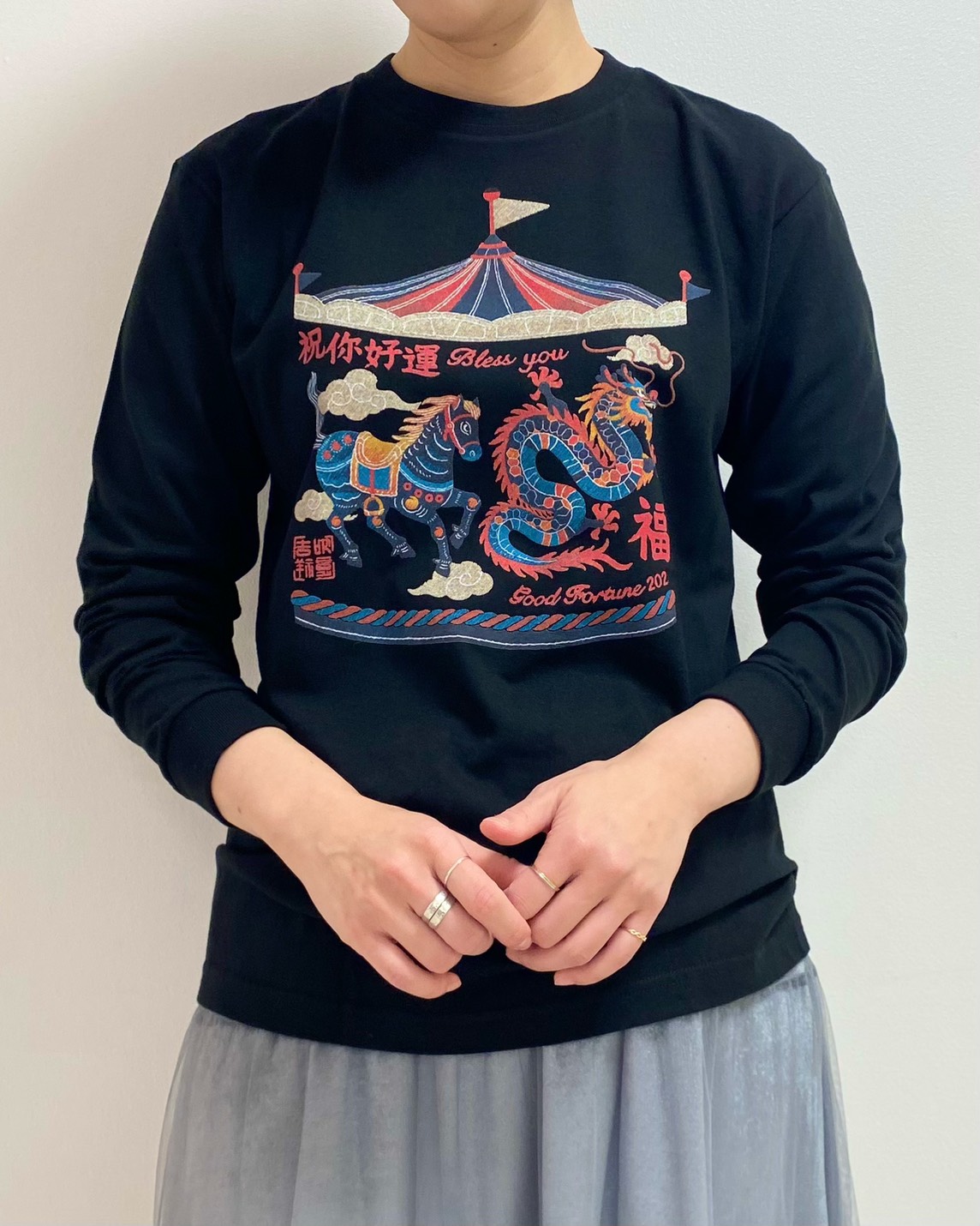 可愛いモチーフの刺繍風プリント🎠🐉