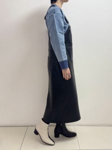 フェイクレザージャンパースカート