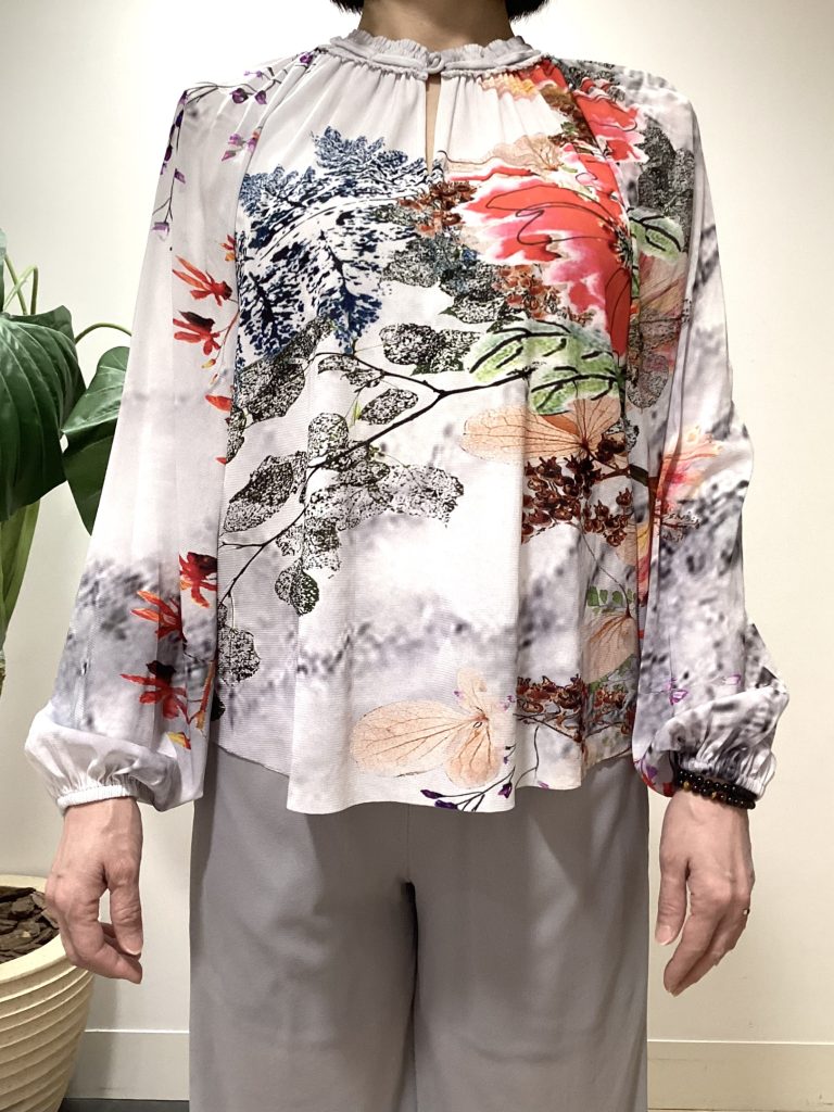 本日は「ダリマーブルフラワープリントブラウス」をご紹介いたします。