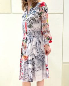 「ダリマーブルフラワープリントネットワンピース」を