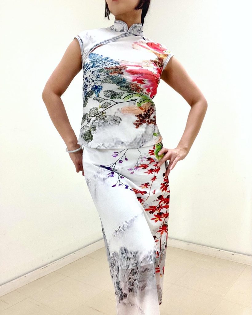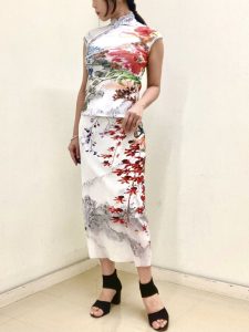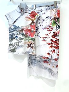 山水画のような大理石カラーに伝統とモダンを融合したフラワープリントがアートピースを纏うようなセットアツプ
