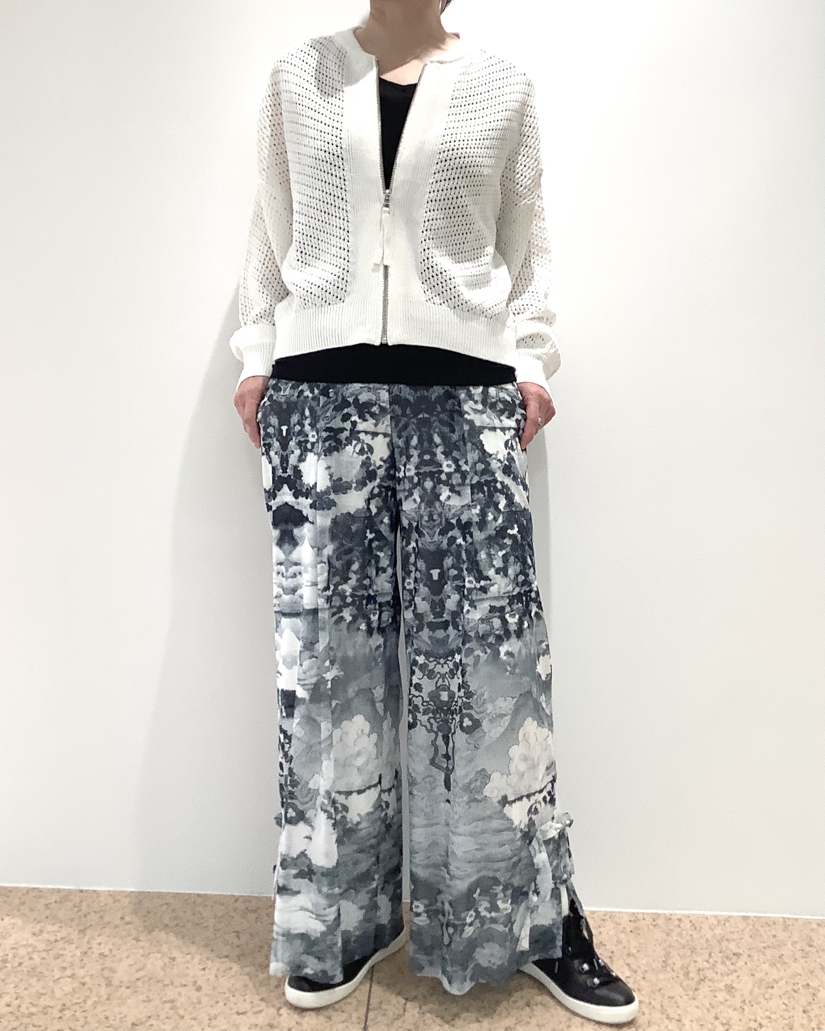 本日は「モノトーンブッダプリントネットパンツ」をご紹介いたします。
